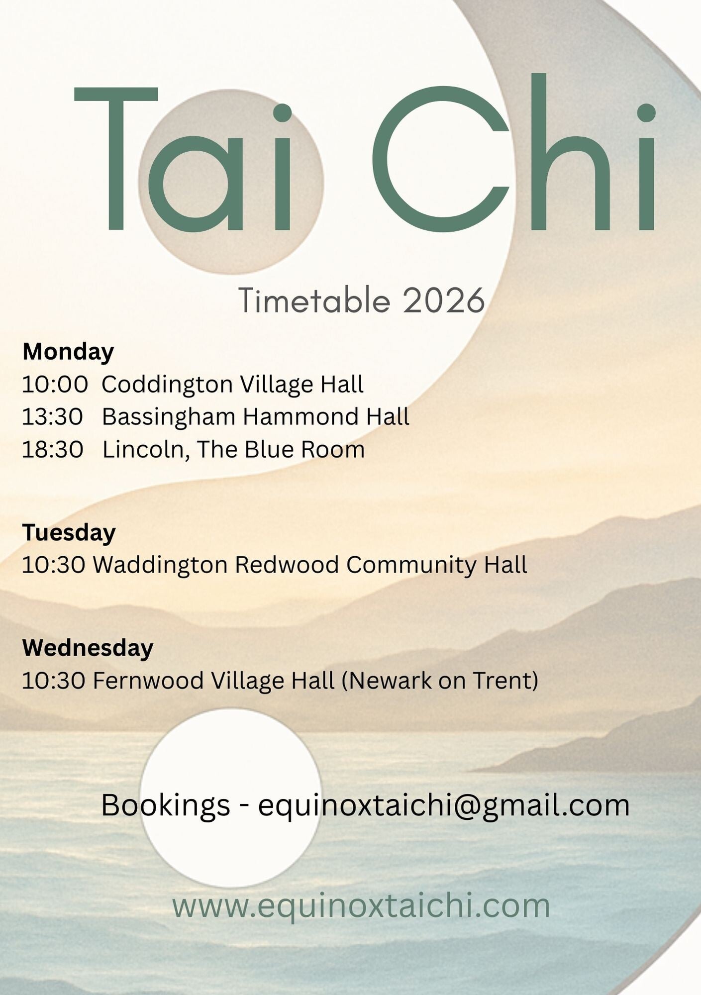 To book email equinoxtaichi@gmail.com or call 07730133068